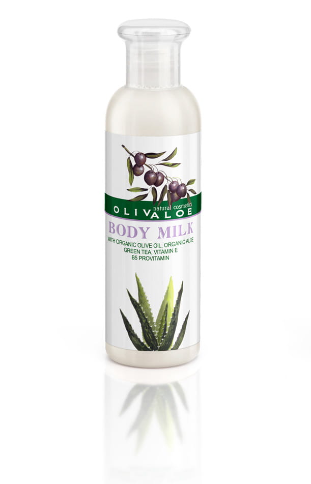 Body milk with organic olive oil, organic aloe, green tea, vitamin E and provitamin B5. The combined effect of these natural ingredients moisturizes, soothes and protects the skin from rough conditions, leaving it smooth and glowing.