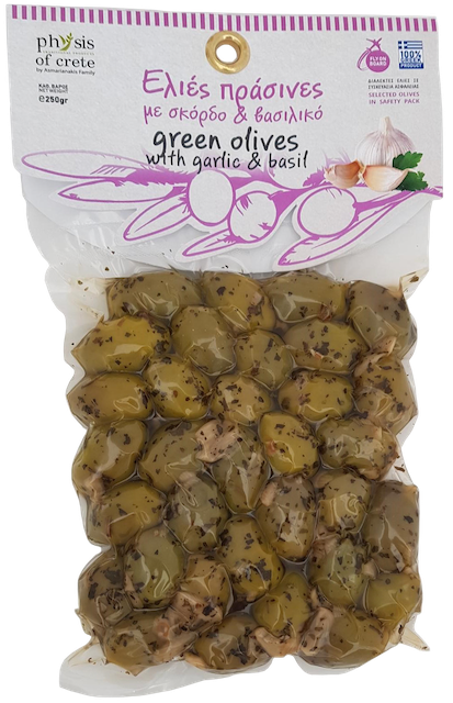 Physis of Crete pitted green olives with garlic and basil, 250g