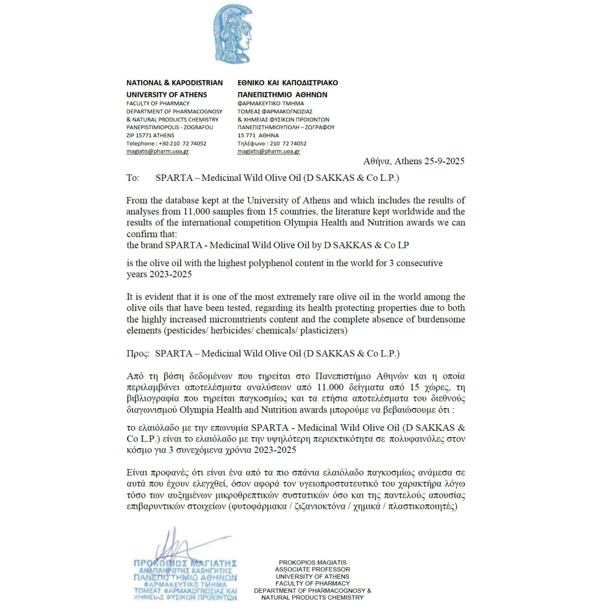 - University of Athens – Faculty of Pharmacy: confirmation of the highest polyphenol content (2025)