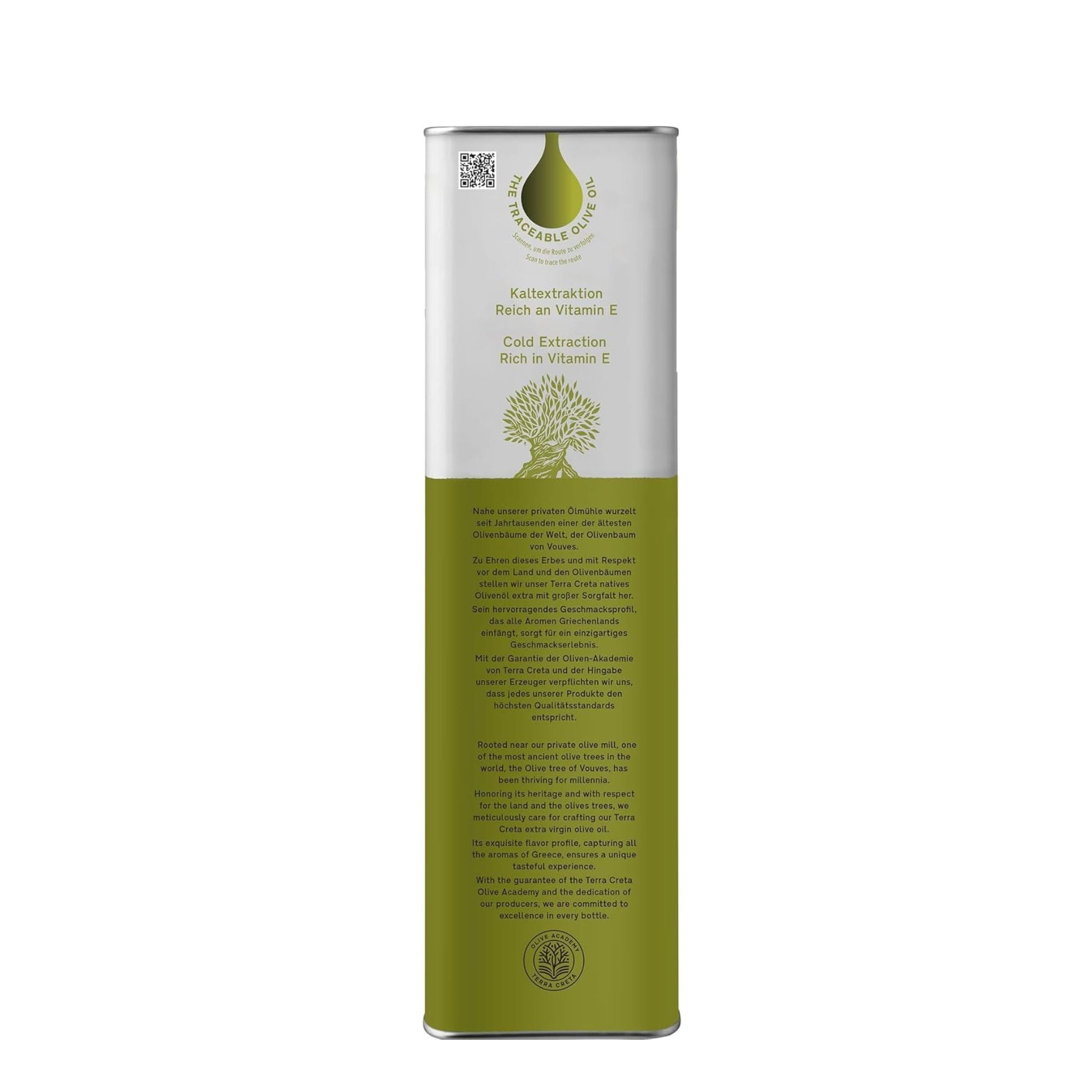 On the palate, Terra Creta Estate olive oil delights with its complex, balanced flavor. It features notes of green pepper, fresh herbs, and a slight bitterness characteristic of Koroneiki olives. This rich olive oil combines subtle spiciness with a pronounced fruit-and-vegetable profile, making it the perfect complement to a wide variety of dishes.
